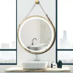 Frame Round Mirror,Round Bathroom Mirror with Light,Wall Mounted Lighted Vanity Mirror, Anti-Fog & Dimmable Touch Switch