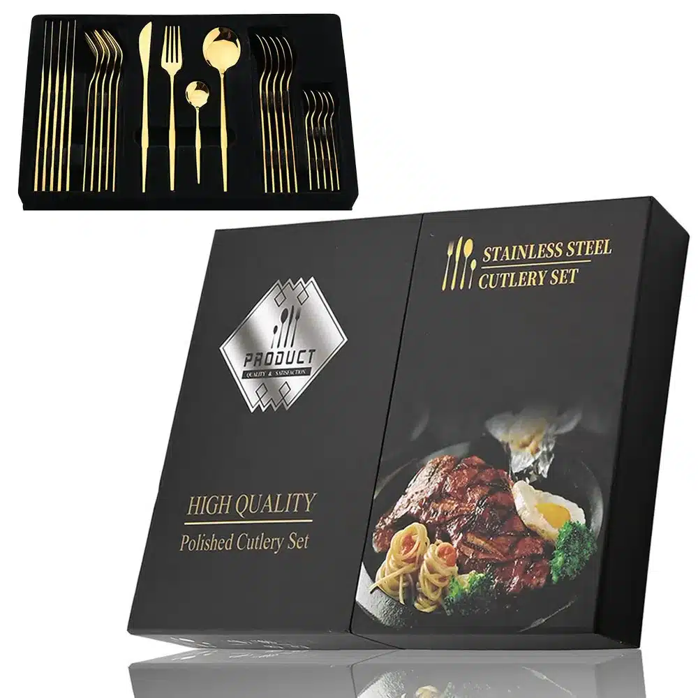 Option 2: Set of 6 Dinner Forks, 6 Dinner Knives, 6 Dinner Spoons, 6 Teaspoons, and a Gift Box.