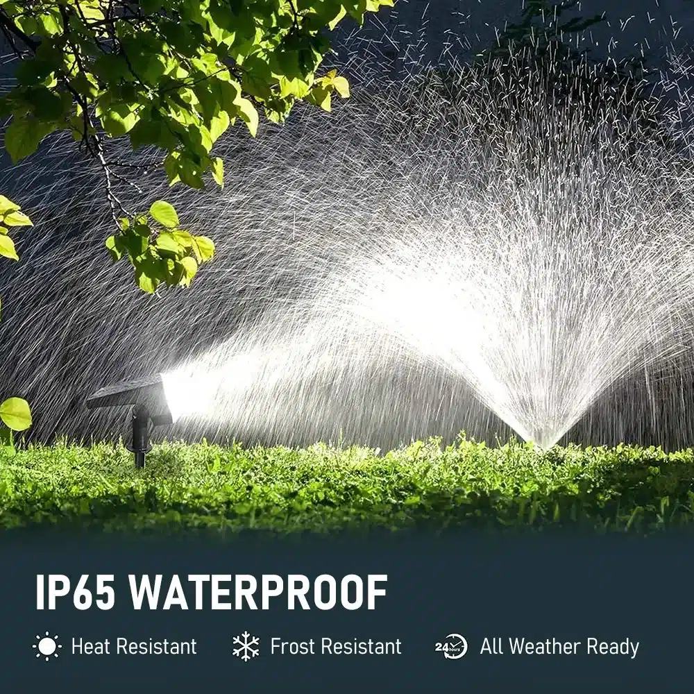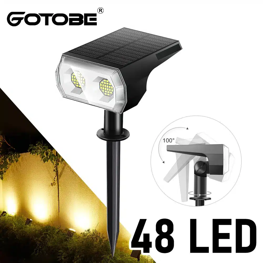 - Advanced Solar Spotlights: Outfitted with 48 high-powered LEDs and a specialised reflective system, alongside a 60° beam angle, these garden spotlights outshine other solar options on the market with their brightness and focused light projection.