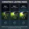 - Lighting Modes: Three levels of brightness