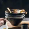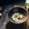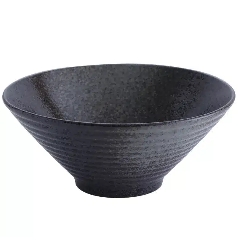 Innovative Japanese dining set featuring a commercial-grade “bamboo hat” design ceramic bowl. Perfect for domestic use, this generously sized bowl is ideal for serving ramen, rice, noodles, or soup.