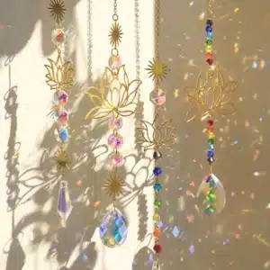 Sun Catcher Crystal Lotus Hanging Crystals Stained Glass Suncatcher Outdoor Decor Rainbow Maker Prism Chakras Garden Decoration
