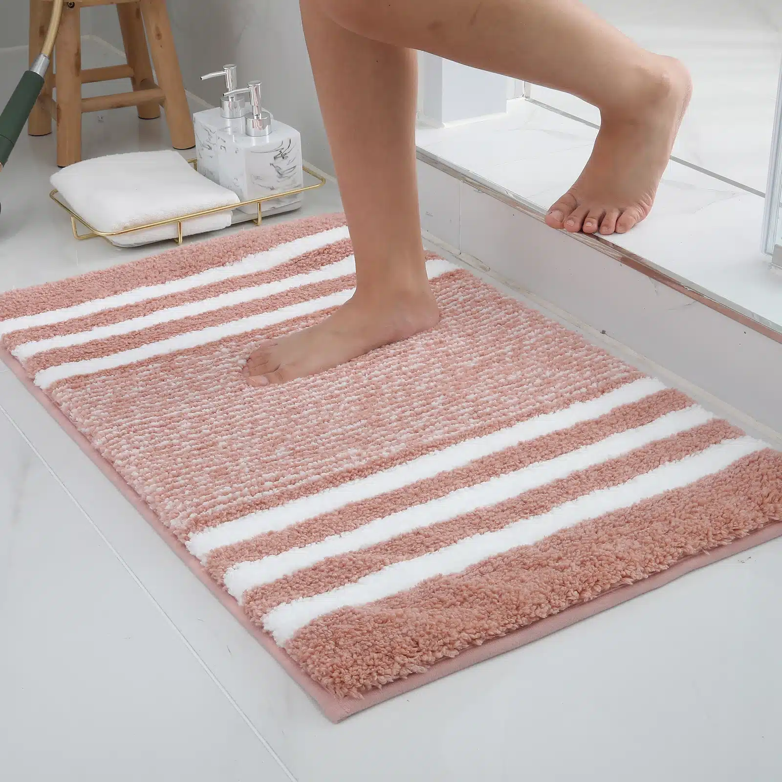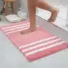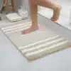 - Efficient in Absorbing Water: The soft coral velvet microfibre layer on Olanly bath rugs rapidly soaks up moisture, drying your feet instantly while preventing water retention on the mat’s surface, thus maintaining clean, dry floors.