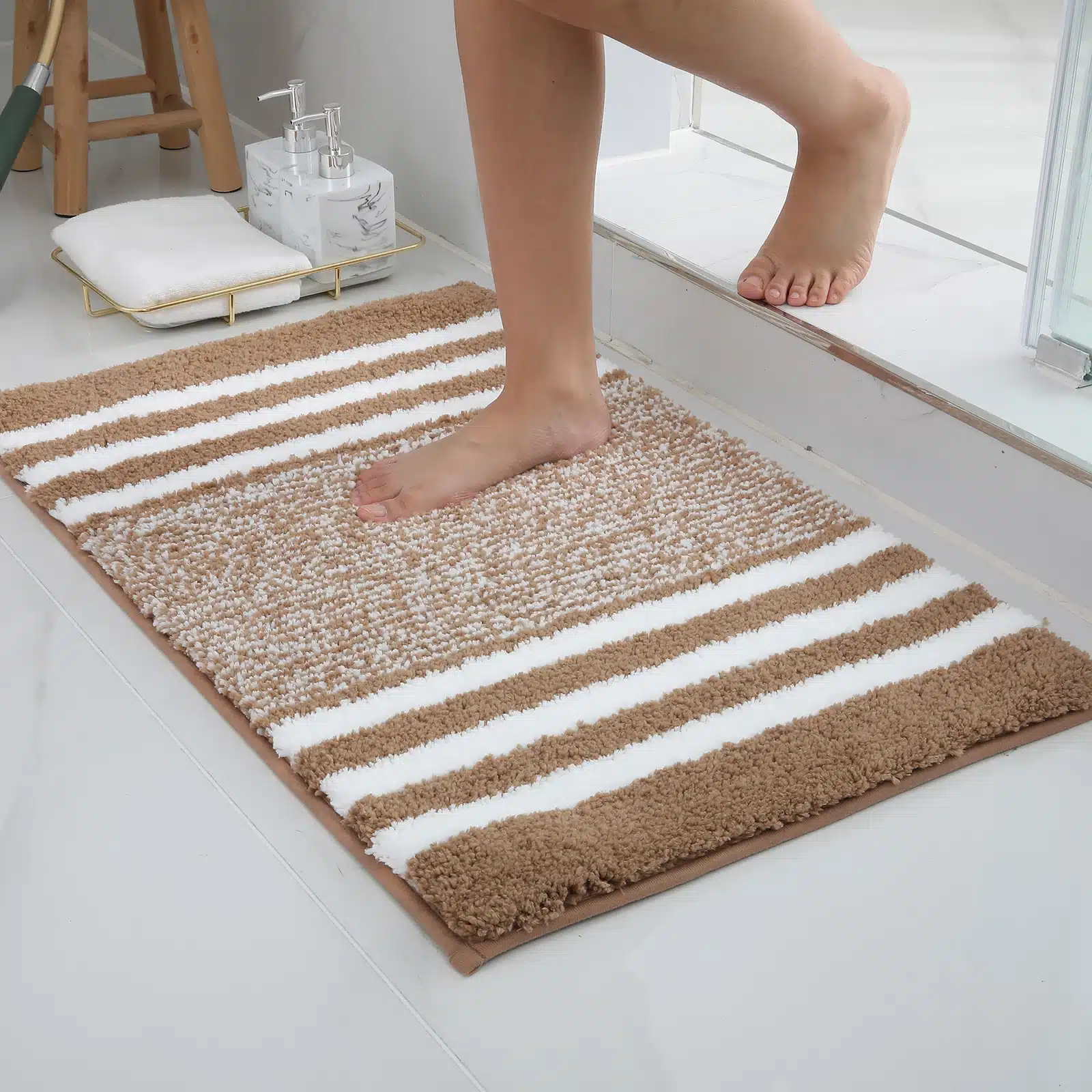 - Easy Maintenance: The Olanly bathroom mat is straightforward to care for. It can be machine washed with cold water and mild detergent (avoiding chlorine or bleach) and then tumble dried on low or hung to dry. The colour remains vibrant and unfaded even after numerous washes.