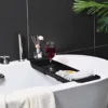 - Enjoy the luxury of having a drink, reading a book, or watching a movie in the bath. This tray can comfortably hold your toiletries, including body wash and towels.