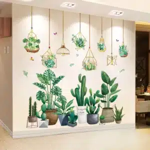 [shijuekongjian] Green Plant Wall Stickers Decor DIY Potted Culture Mural Decals for Living Room Bedroom Kitchen Home Decoration