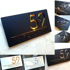 Customised Modern House Address Plaque Door Number Signs Name Plates Glass Effect Acrylic