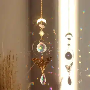 Crystals Wind Chime Suncatcher Golden Butterfly Pendant Rainbow Prism Stained Glass Ornament Chakras Crafts Home Garden Decor