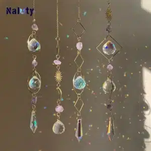 Hanging Crystal Pendant Garden Suncatcher Wind Chimes Rainbow Prism Crystal Chain for Window Drop Bell Christmas Tree Home Decor