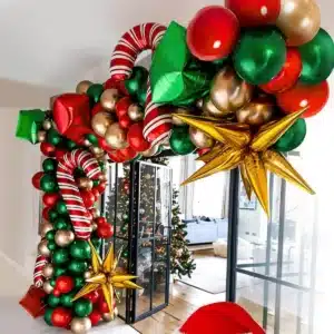 85Pcs Christmas Balloon Arch kit with Green Gold Red Cane Cone Star Foil Balloons for Christmas Party New Year Party Decorations