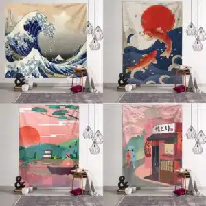 Print Blanket Kanagawa Wave Tapestry Wall Hanging Bohemian Bed Hippie Japanese Illustration Kawaii Bedroom Home Decor