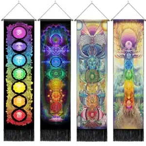 Seven Chakra Tapestry Vertical Wall Hanging Tree Of Life Tapestry Tassel Yoga Meditation Tapestry for Bedroom Living Decoration