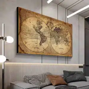 Map Of The World Retro Old Picture Canvas Vintage Earth Painting For Living Room Poster Prints Home Office Study Wall Art Decor
