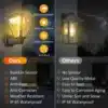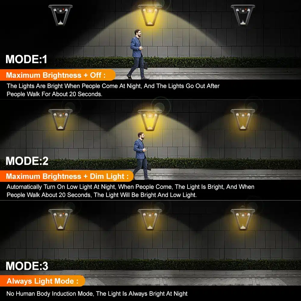 Distinct from other solar-powered lights, our outdoor lights feature an easy-access mode button. A red indicator alerts to low power, enhancing convenience. Engineered for exterior use with an IP65 waterproof rating, these lights perform impeccably even in adverse weather, illuminating your outdoor spaces effectively.